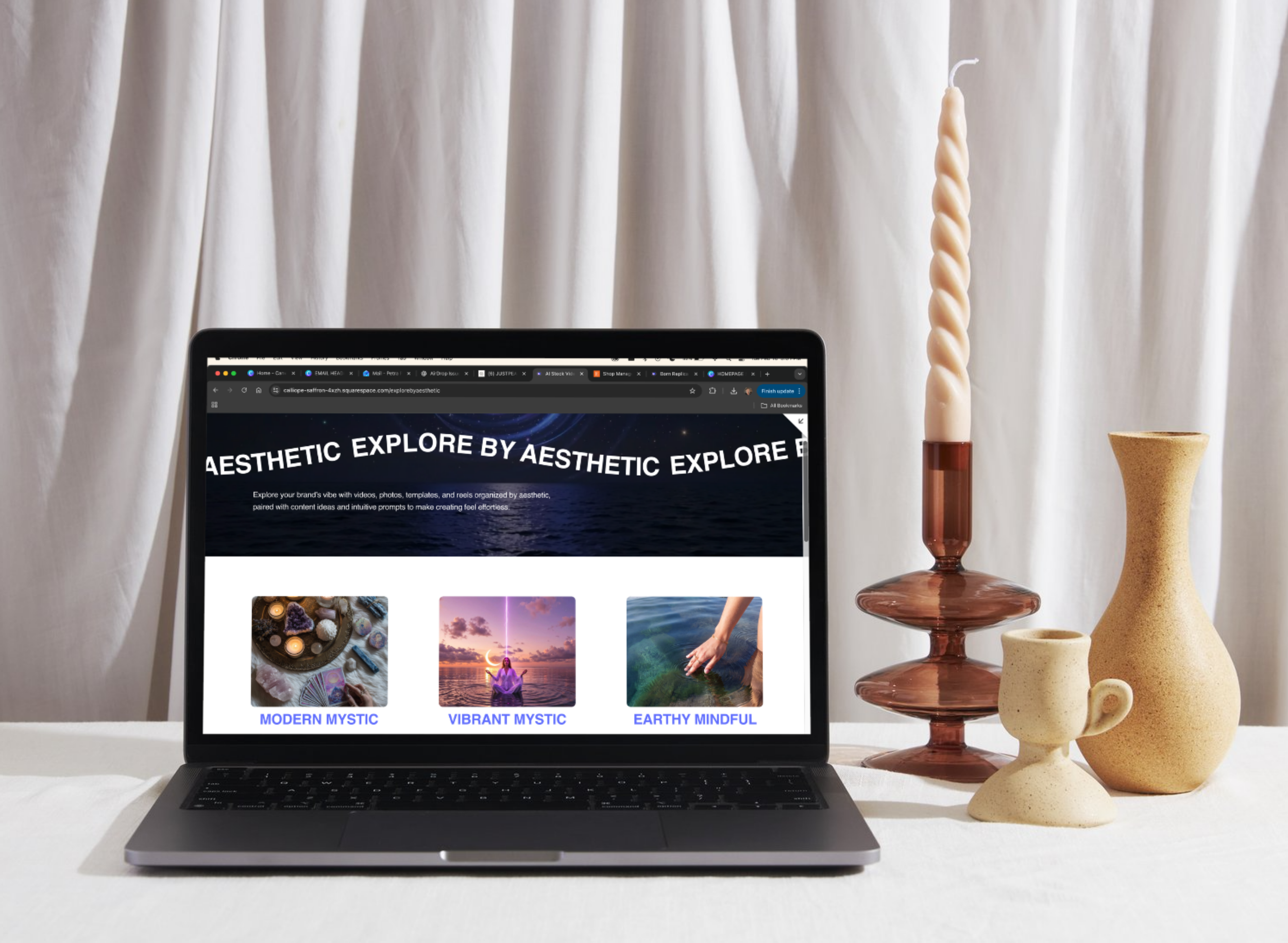 We blend dreamy AI visuals + curated UGC with a spiritual/wellness aesthetic—not generic stock you’ll find on Canva or free sites. Collections are designed to help you post faster with a cohesive look that still feels soulful and original.